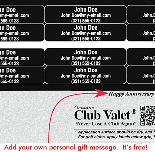 Club Valet® Labels are a great way to protect your sporting equipment and get your lost property returned faster. Each set includes 16 labels, which can be used on everything from golf clubs and racquets to helmets and sunglasses. Made from premium outdoor vinyl with a high-gloss polyester laminate these labels are waterproof, fade resistant, and stand up to most solvents and detergents. Available in 2 ink colors! Label size: 2 1/8" x 1/2